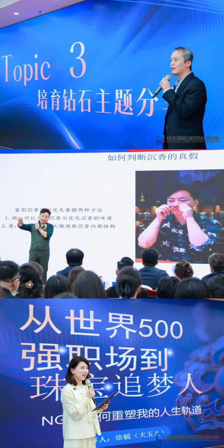 在專題分享環(huán)節(jié),沉香領(lǐng)域?qū)<摇⑸钲谑性S多福珠寶有限公司總經(jīng)理許慶慧帶來(lái)《沉香市場(chǎng)的投資密碼》主題分享,深入解析沉香市場(chǎng)分析、需求洞察、未來(lái)發(fā)展趨勢(shì)。培育鉆石專家、中國(guó)鉆石行業(yè)獨(dú)立分析師及觀點(diǎn)傳播、自媒體達(dá)人朱光宇從培育鉆石格局、全球市場(chǎng)數(shù)據(jù)、培育鉆石與天然鉆石區(qū)別、培育鉆石市場(chǎng)未來(lái)展望幾個(gè)維度,就行業(yè)綠色變革與科技前沿進(jìn)行深度解讀,為與會(huì)者帶來(lái)跨品類、跨維度的知識(shí)更新。優(yōu)秀學(xué)員代表、毓見(jiàn)珠寶創(chuàng)始人徐毓現(xiàn)場(chǎng)分享了她從世界500強(qiáng)企業(yè)員工成功轉(zhuǎn)型為珠寶創(chuàng)業(yè)者的心路歷程,在NGTC完成了從“感性愛(ài)好者”到“理性專業(yè)人士”的蛻變,讓她真正實(shí)現(xiàn)了從熱愛(ài)到專業(yè)的跨越,并立志成為東方美學(xué)的“擺渡人”,真實(shí)動(dòng)人的故事引發(fā)強(qiáng)烈共鳴。
